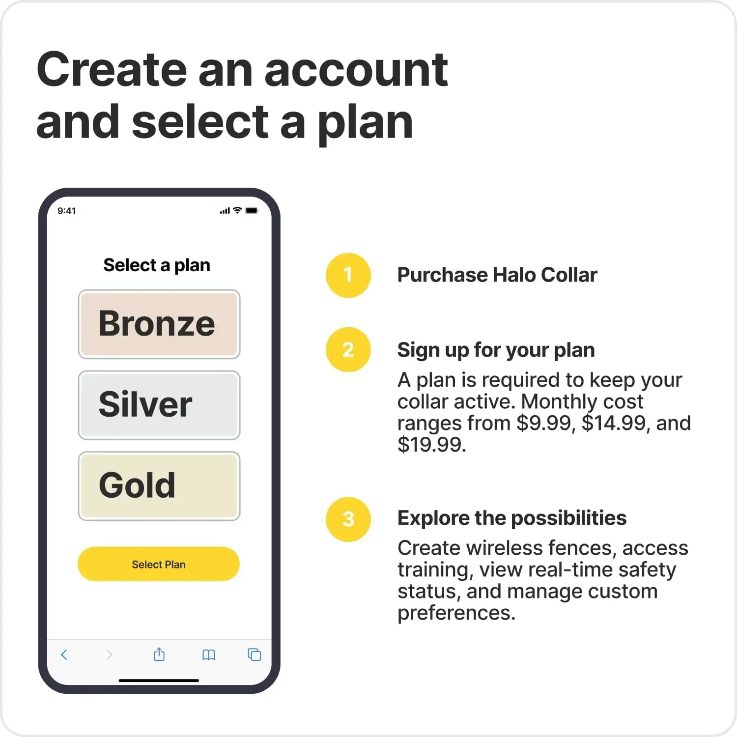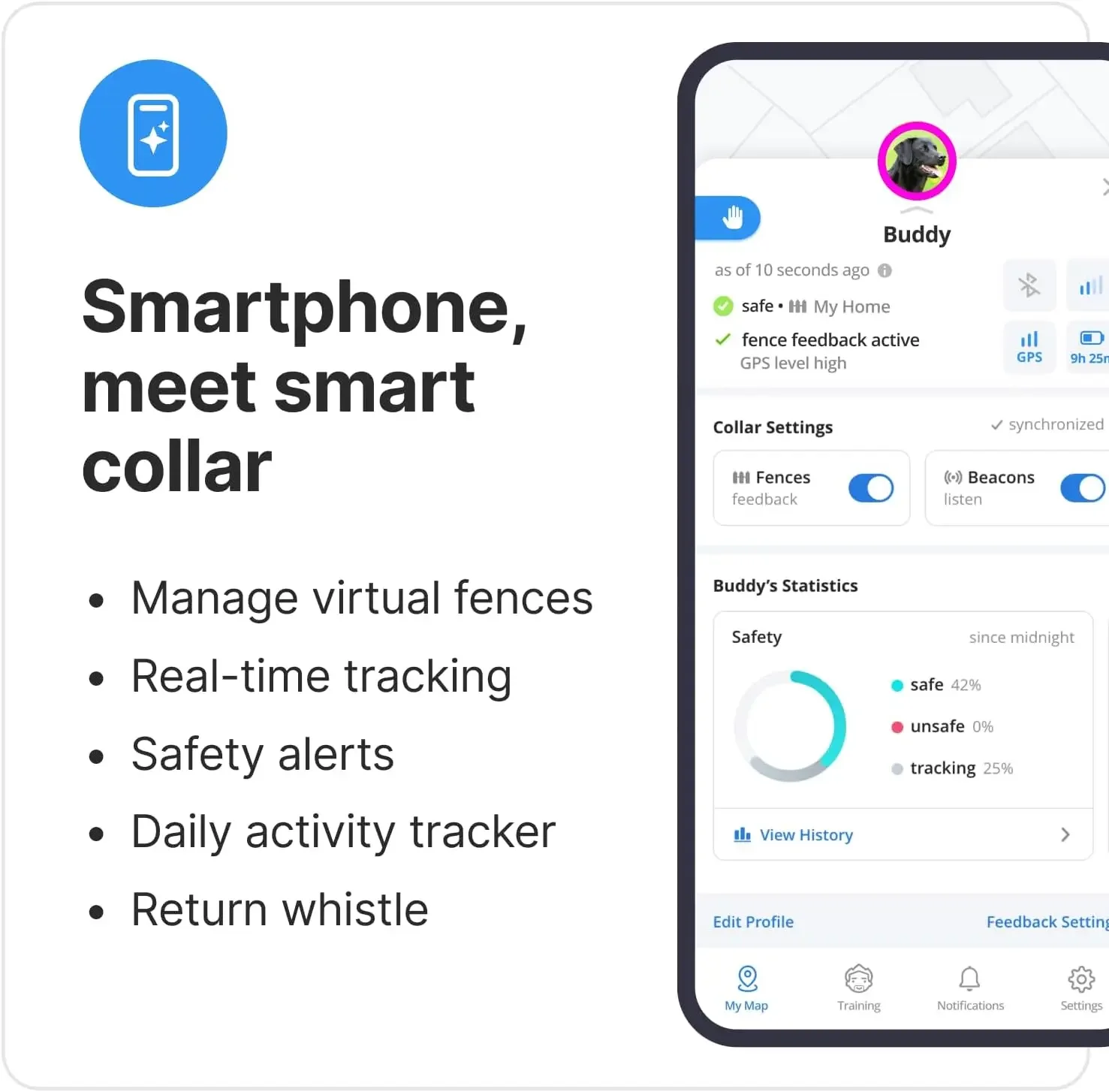 Experience ultimate safety and peace of mind with Halo's wireless dog fence, powered by state-of-the-art GPS technology. Easily define boundaries for your dog and receive real-time notifications whenever they leave the designated area. Say goodbye to traditional wireless fences that only alert you after your dog has escaped. Simply use your smartphone to draw the boundaries and keep your dog safely within them.