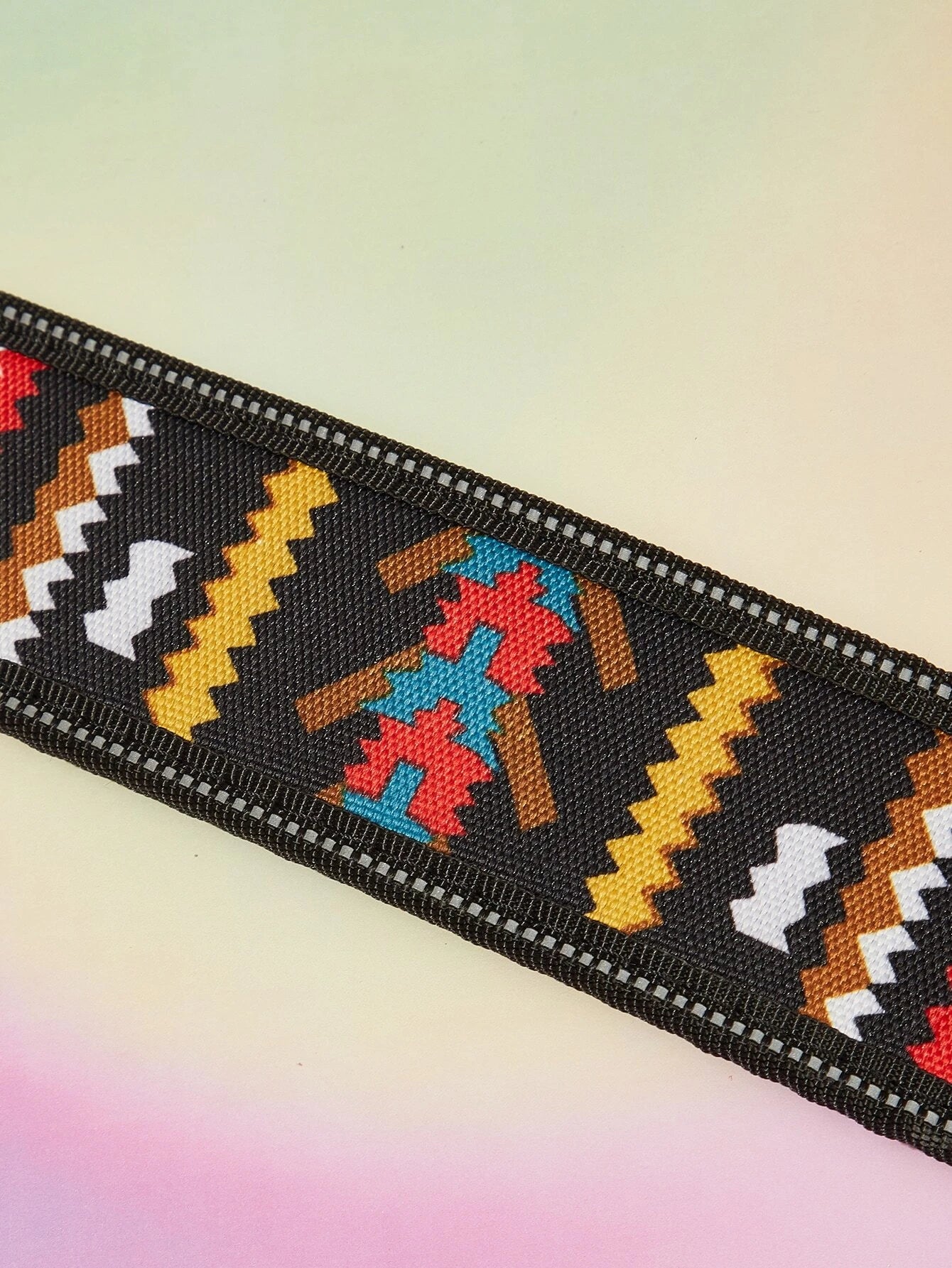 Colorful Wave Pattern Outdoor Reflective Adjustable Pet Collar with Leash Attachment, Suitable for Dogs to Wear When They Go Out, Suitable for Music Festivals